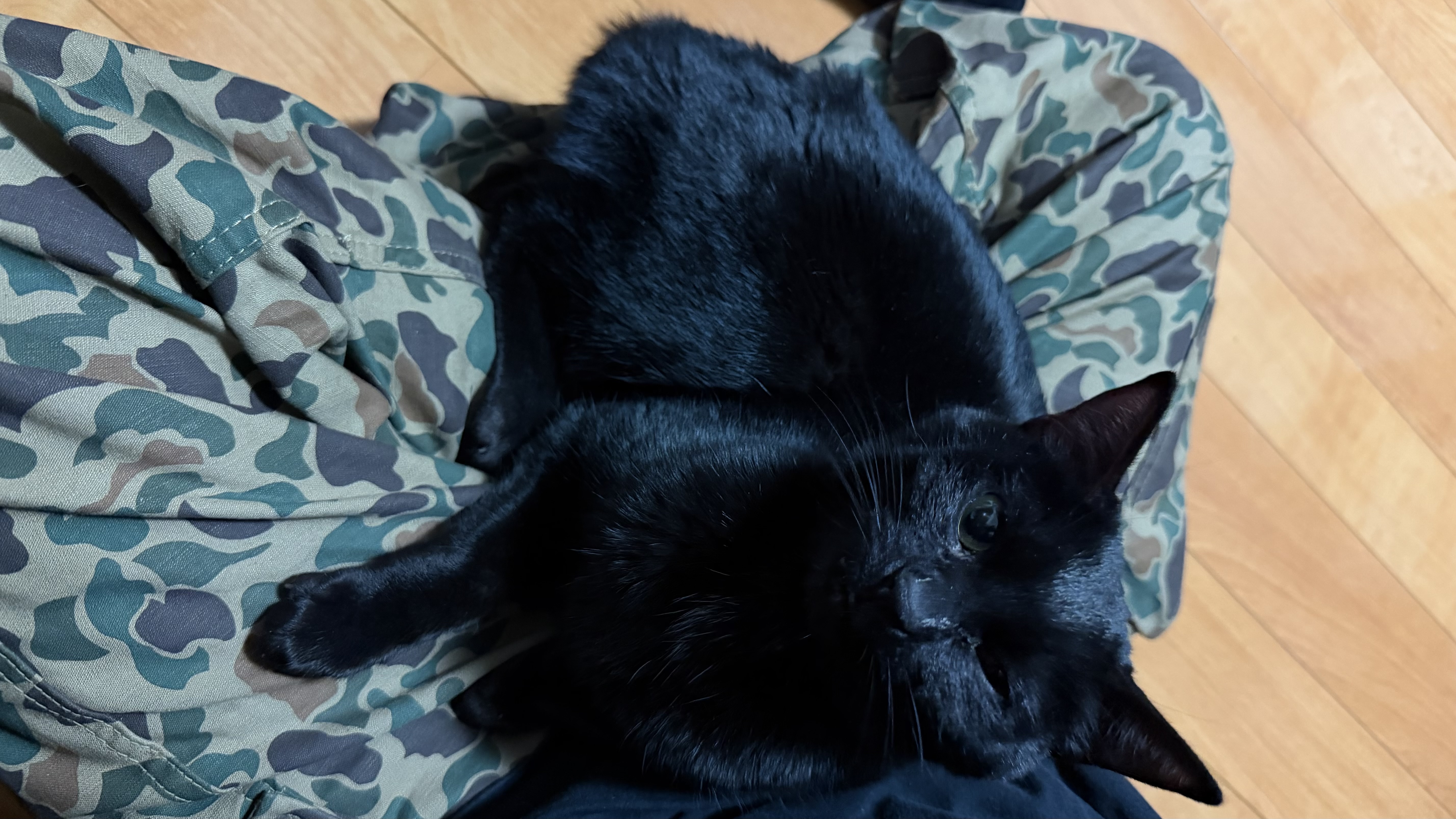 特徴:真っ黒、お腹周りが白、尻尾は短い(ボンボン)、細身、喧嘩はしないと思います。