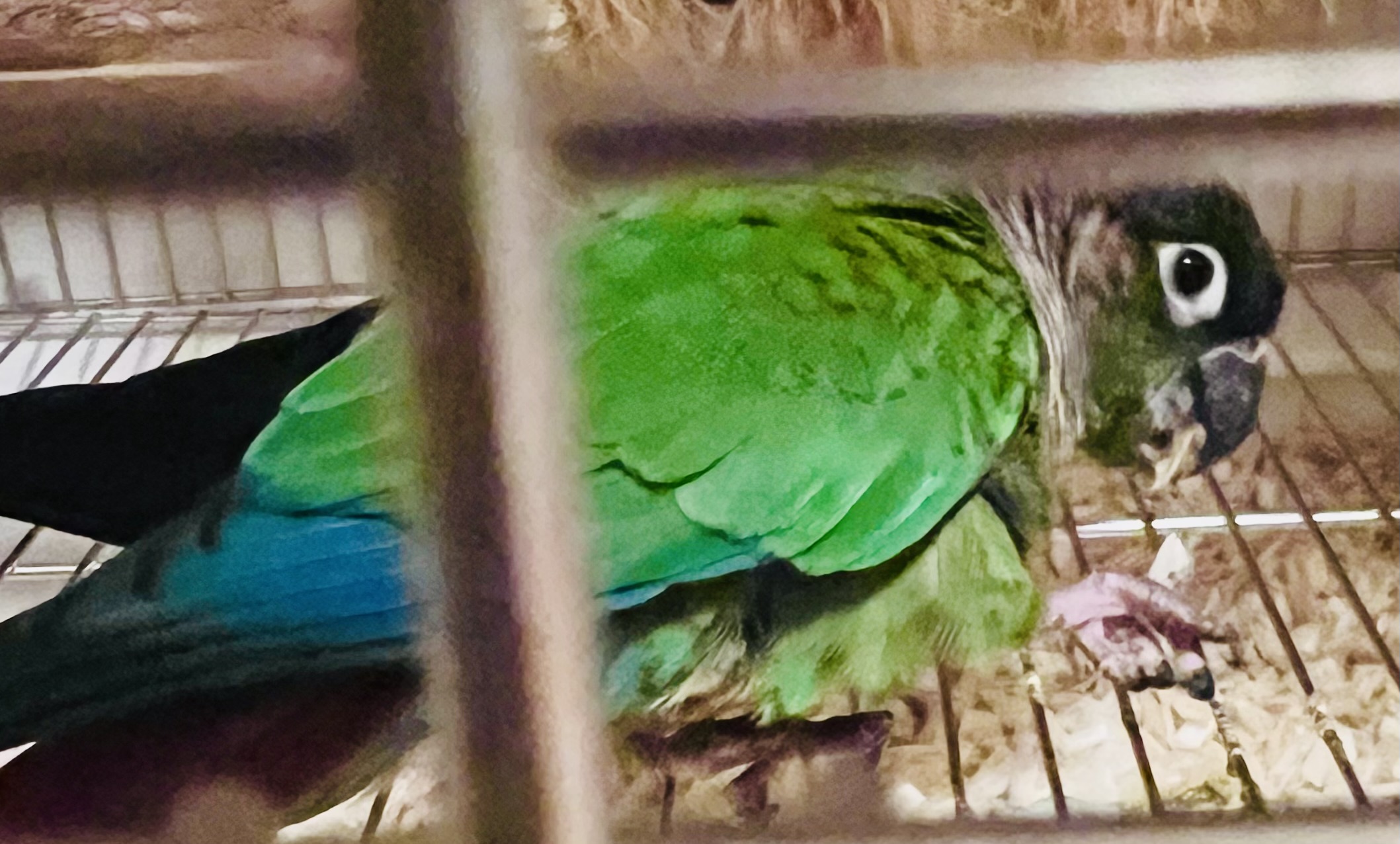 体色は全体的に緑色で、尾羽根は赤色です。甲高い声で「ケーチョ」と鳴きます。