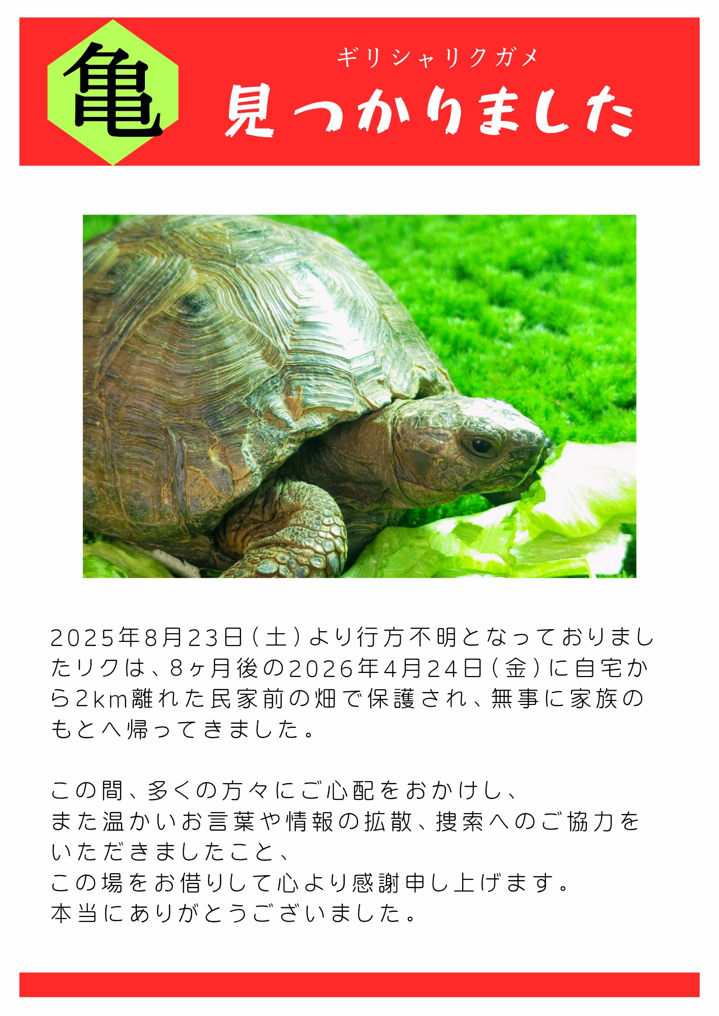 自宅の庭に出していたところ、柵のロックが外れてしまい柵を押し上げて出ていき行方不明になりました。