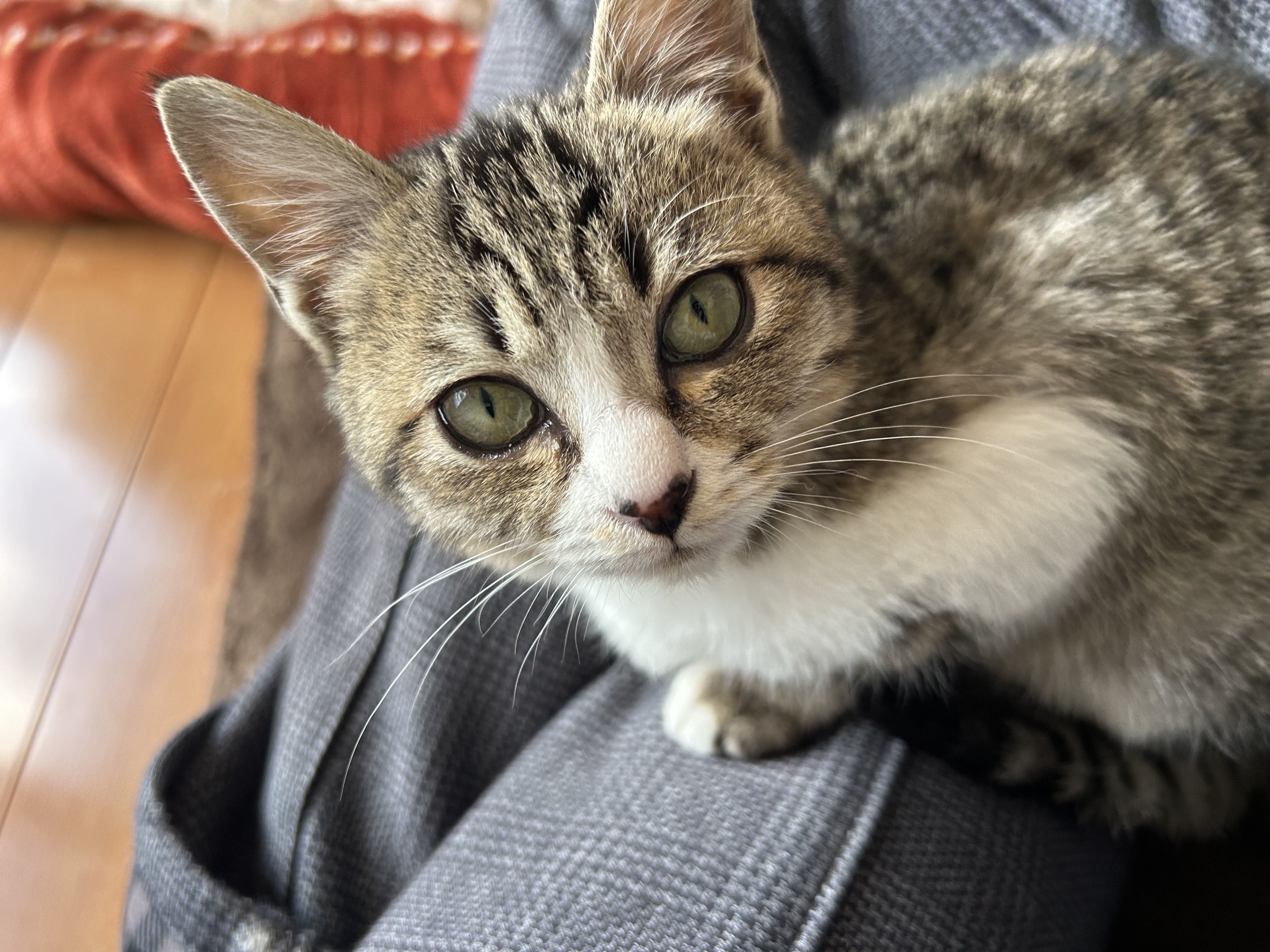 キジシロのメスです。生後2ヶ月、体重800gほどの子猫です。2025年1月11日に群馬県前橋市にて迷い猫になりました。首輪はしていません。人慣れしていませんが、ウェットフードを置くと近づいてきます。右足が白色、左足がキジ柄です。皆さんのご協力が必要です。宜しくお願いいたします。
