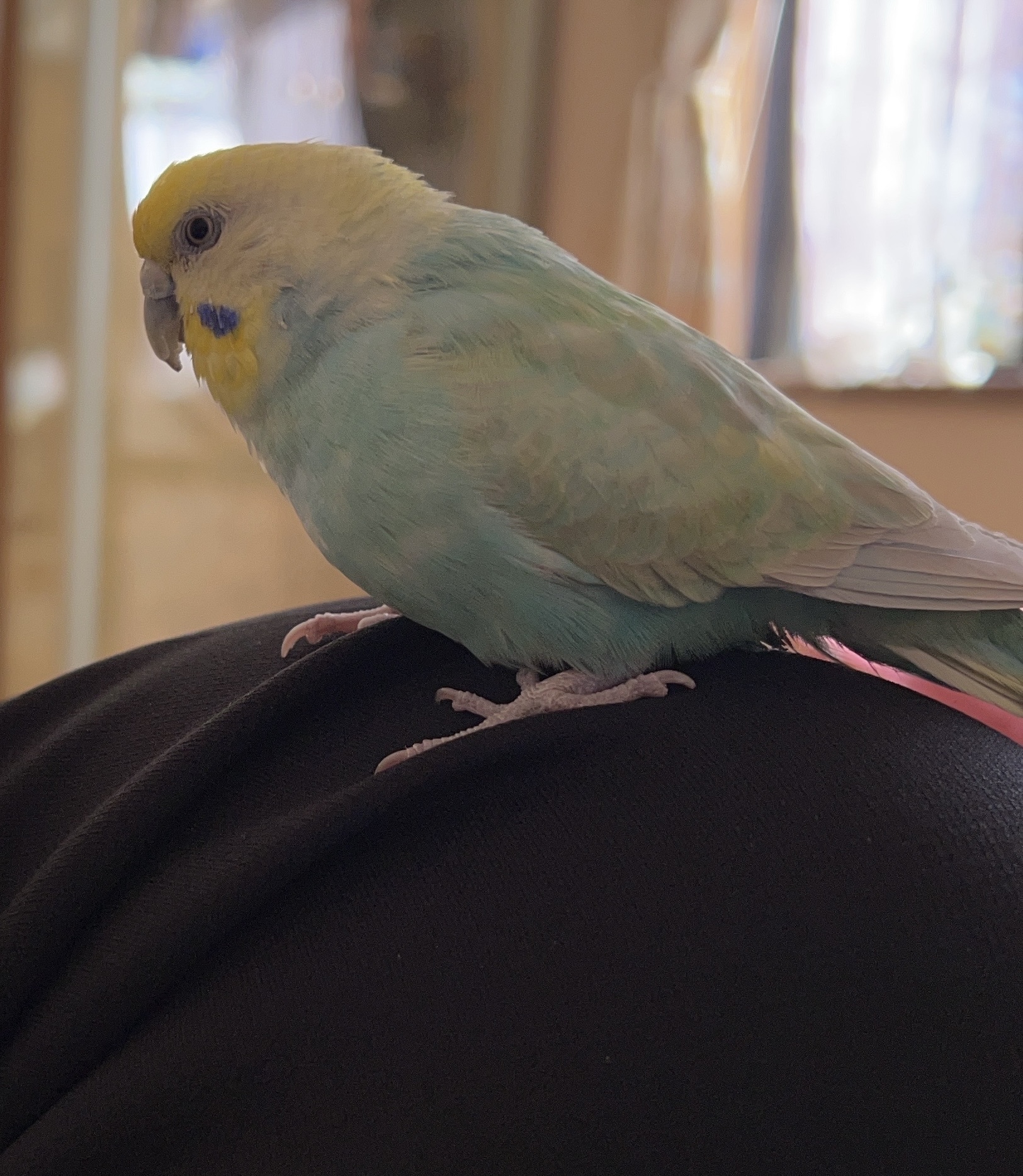 【レイちゃんの特徴】 名前を呼ぶと飛んで肩や頭に来ますが、幼鳥の時に病気で落鳥しそうになり体を押さえつけられたのがトラウマになり、人間に触られるのを嫌がります。