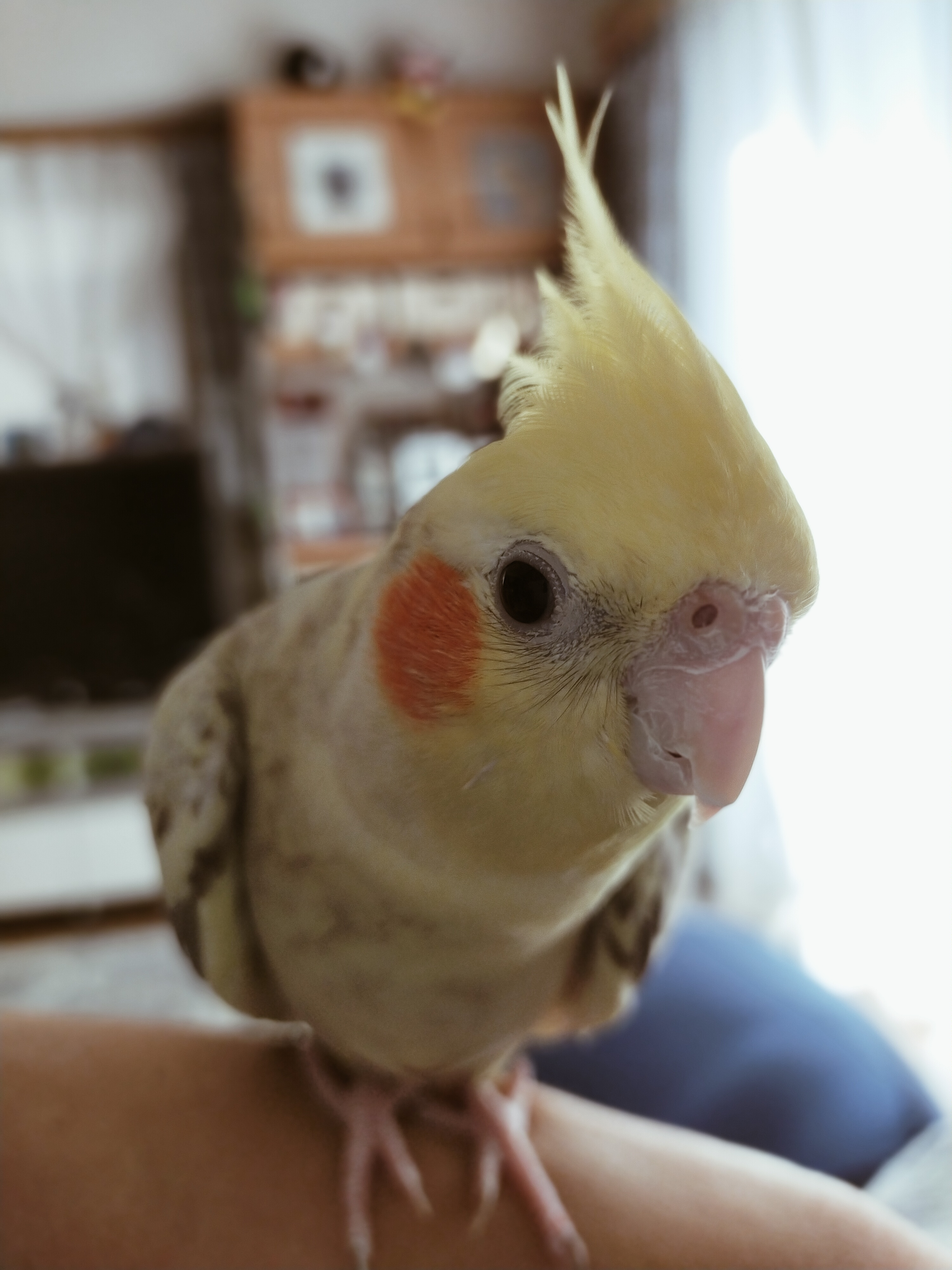 シナモンパールのメスで、あまり泣かないですが呼ぶ時は、甲高い声で鳴きます。