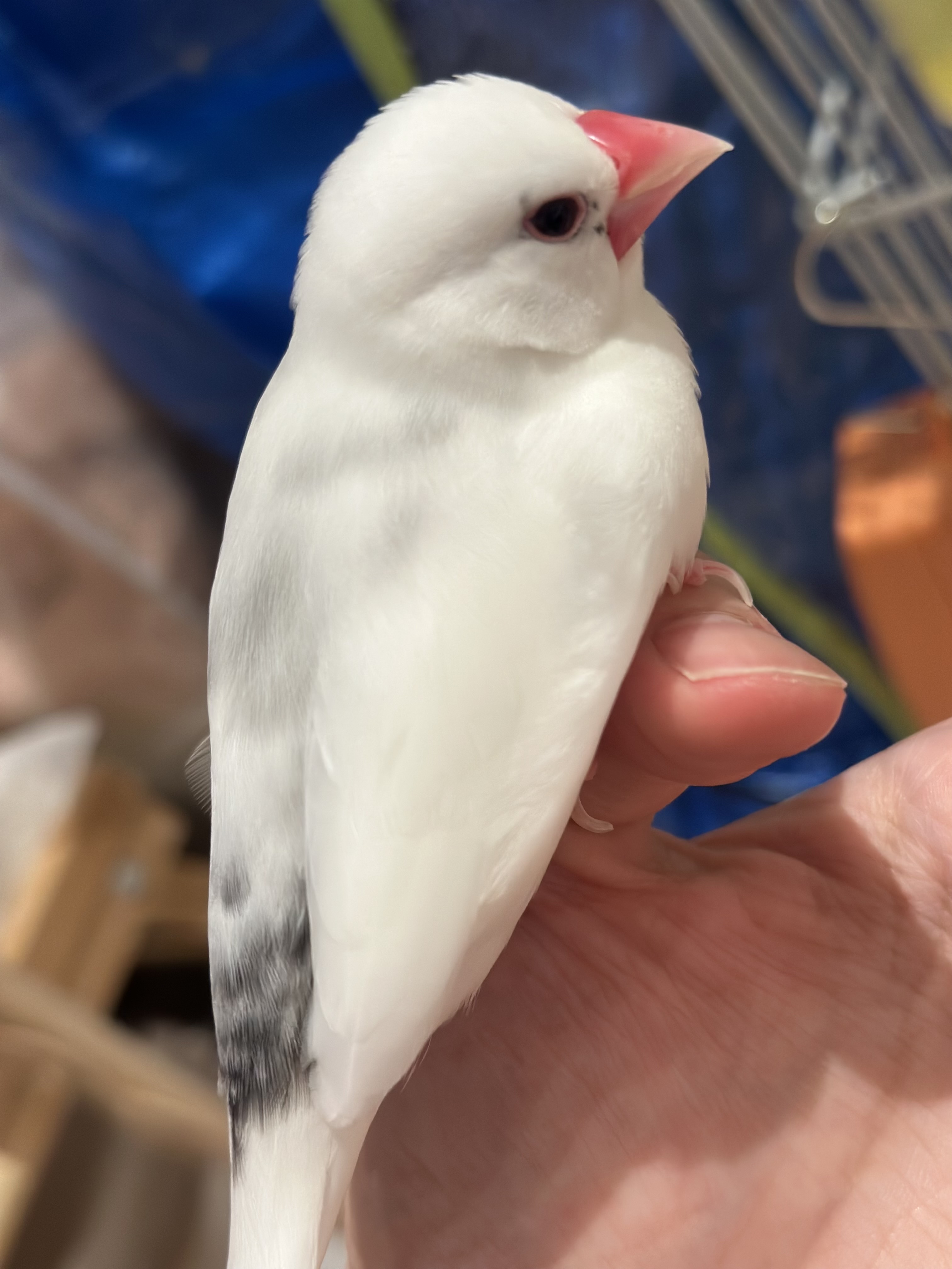 ・文鳥(白色の文鳥、グレー模様あり)