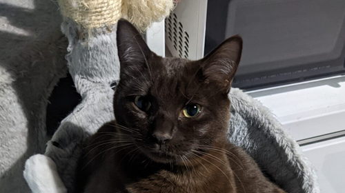 手足などもよく見れば薄っすら縞模様になっていますが遠目に見ると黒猫に見えると思います。