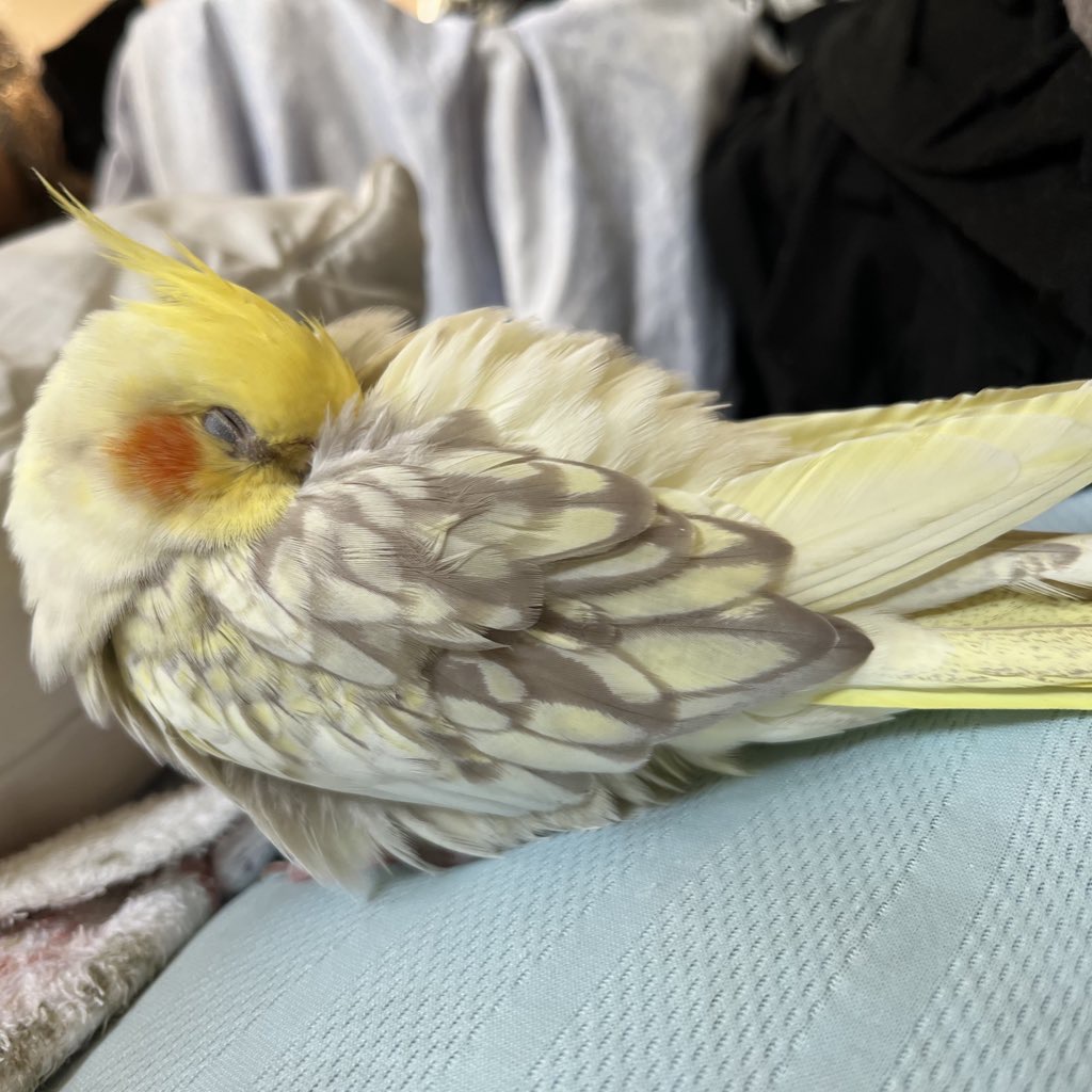 这是一只肉桂珍珠杂色的雌性玄凤鹦鹉。
