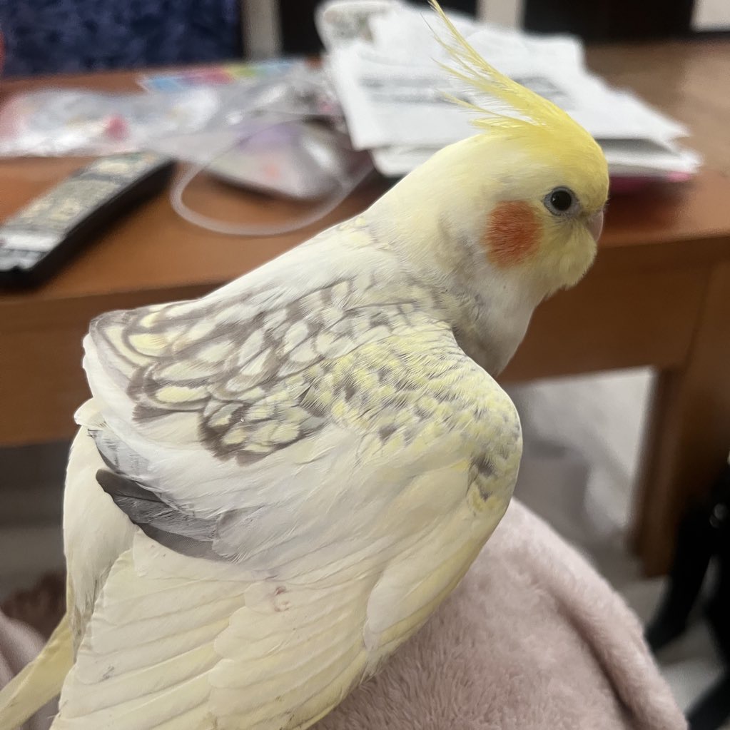 お喋りはしませんが、名前を呼ぶと反応します。また、人懐っこいので肩や頭に乗ってきます。