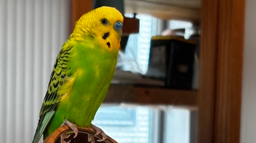 ・頭イエロー、身体ライトグリーン羽が黒のさざなみ模様