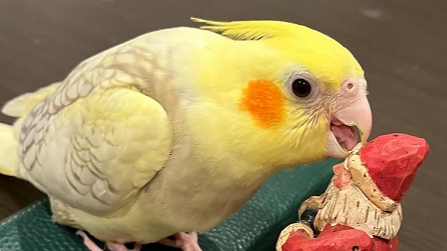 黄色にグレーの模様でほっぺが赤いです。甘えん坊ですが人見知りします。