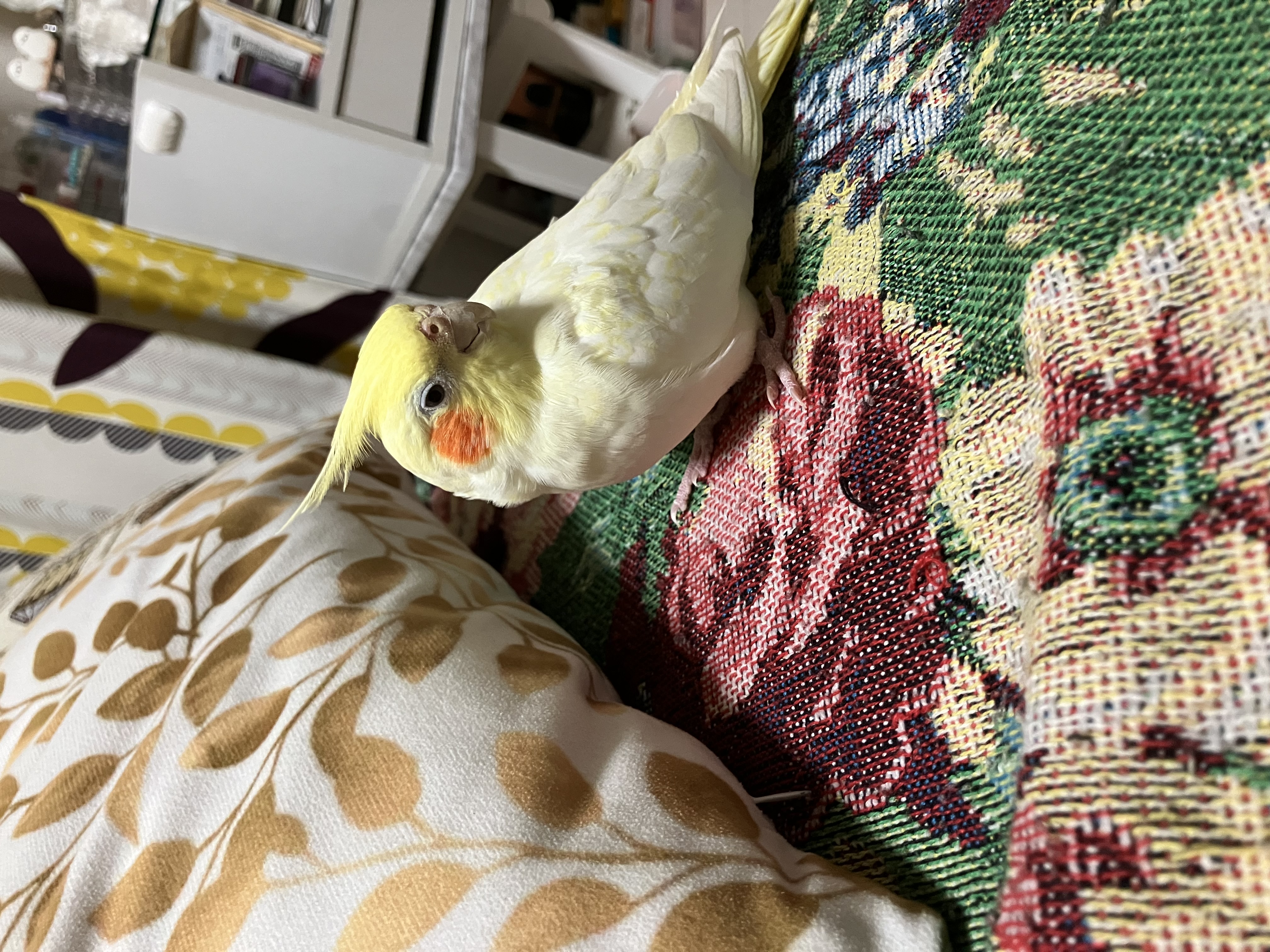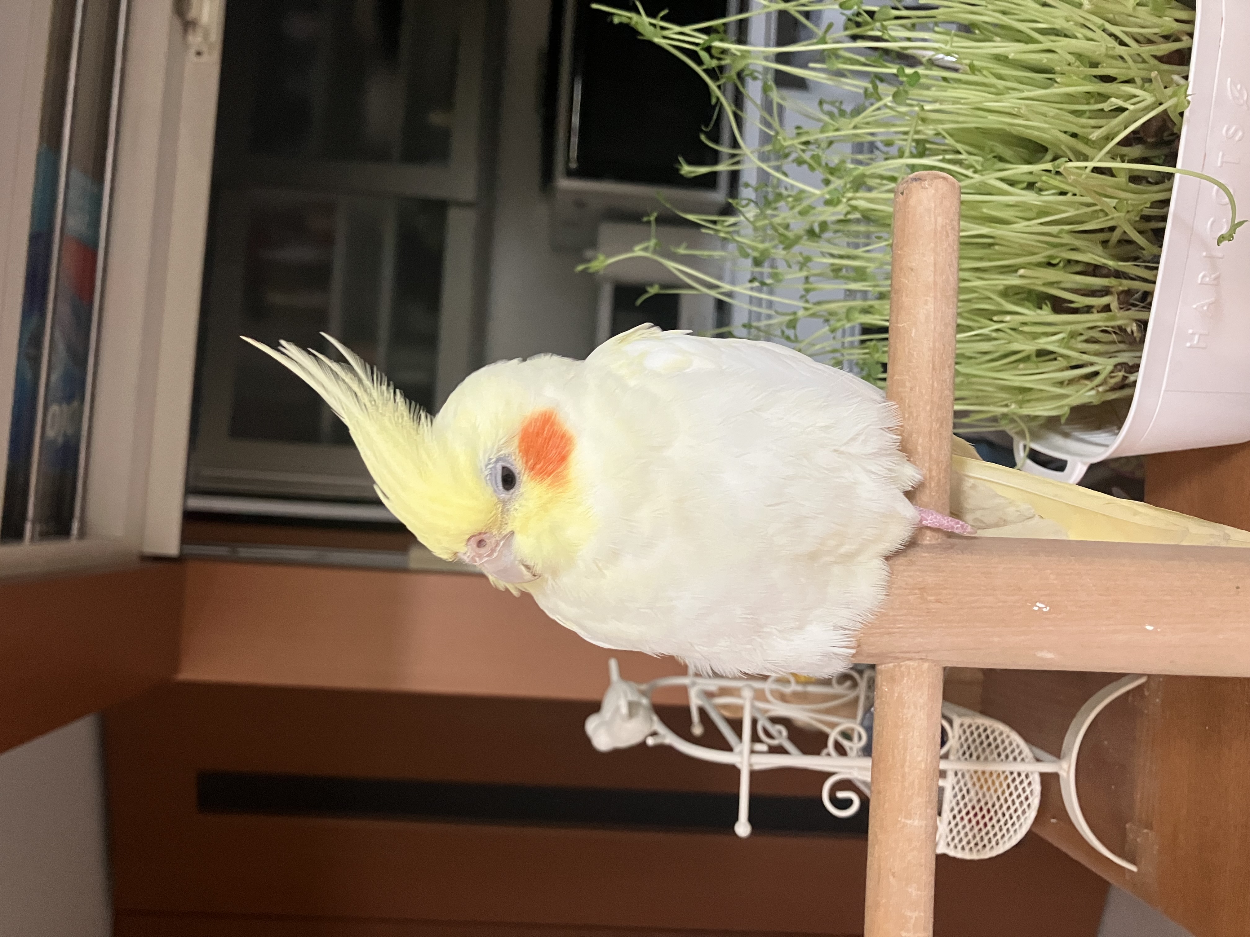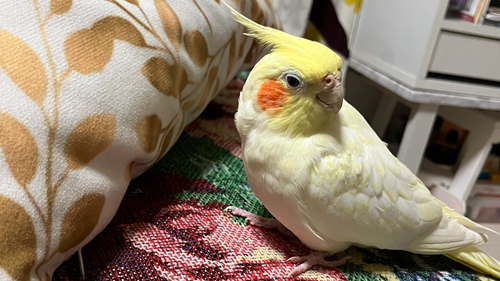 黄色い体にオレンジ色のほっぺで、背中にはうっすら黄色のマダラ模様があります。大きさは20〜30cm程度で、鳩の1〜2回り小さか細めです。