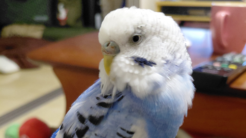 青色が特徴のセキセイインコです。