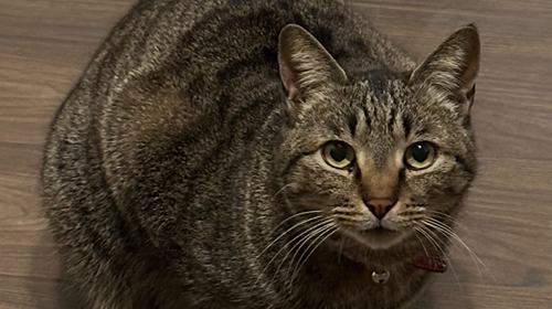 長めでまっすぐなしっぽと、ピンと立った耳のキジトラの男の子(去勢済、約6歳)を探しています。体重は5kg程です。