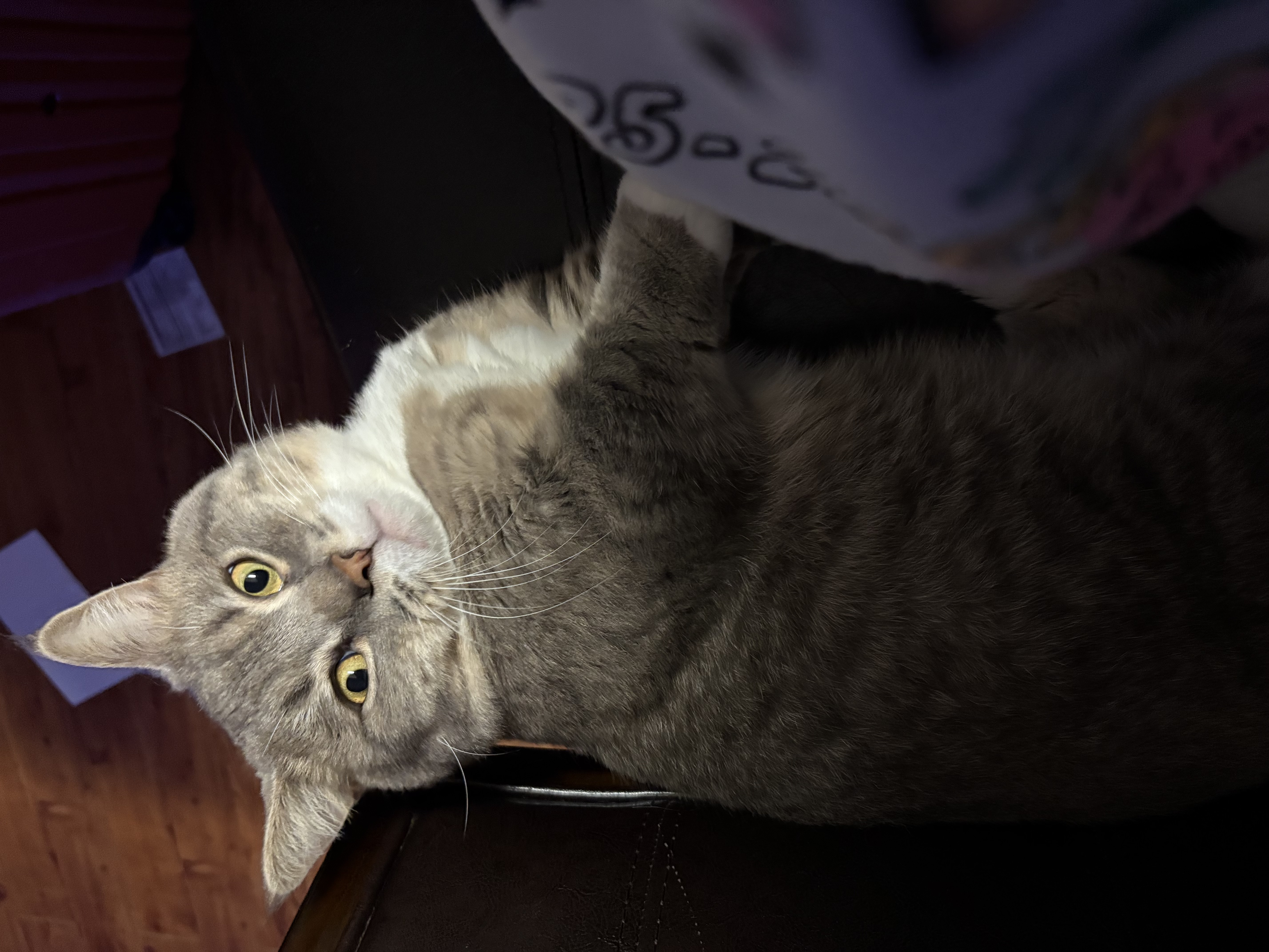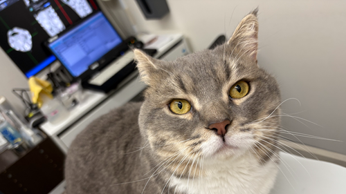 名前はジョージーくんで、色はグレーと白の模様が混ざった感じです。お腹は白です。オスで去勢済みです。食い込んでてわからないと思いますが、青い鈴がついた首輪がついています。短足のマンチカンで、顔は鋭くキリッとしています。ご飯を食べる時はとろんとした顔になります。声は結構通るような声ですが、甘い声ではありません。本日4/19の10時に外出し、15時に帰ってきたらお家にいませんでした。ずっと室内で飼ってた子なのでとても心配です。
