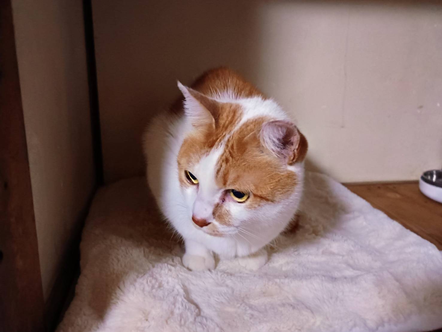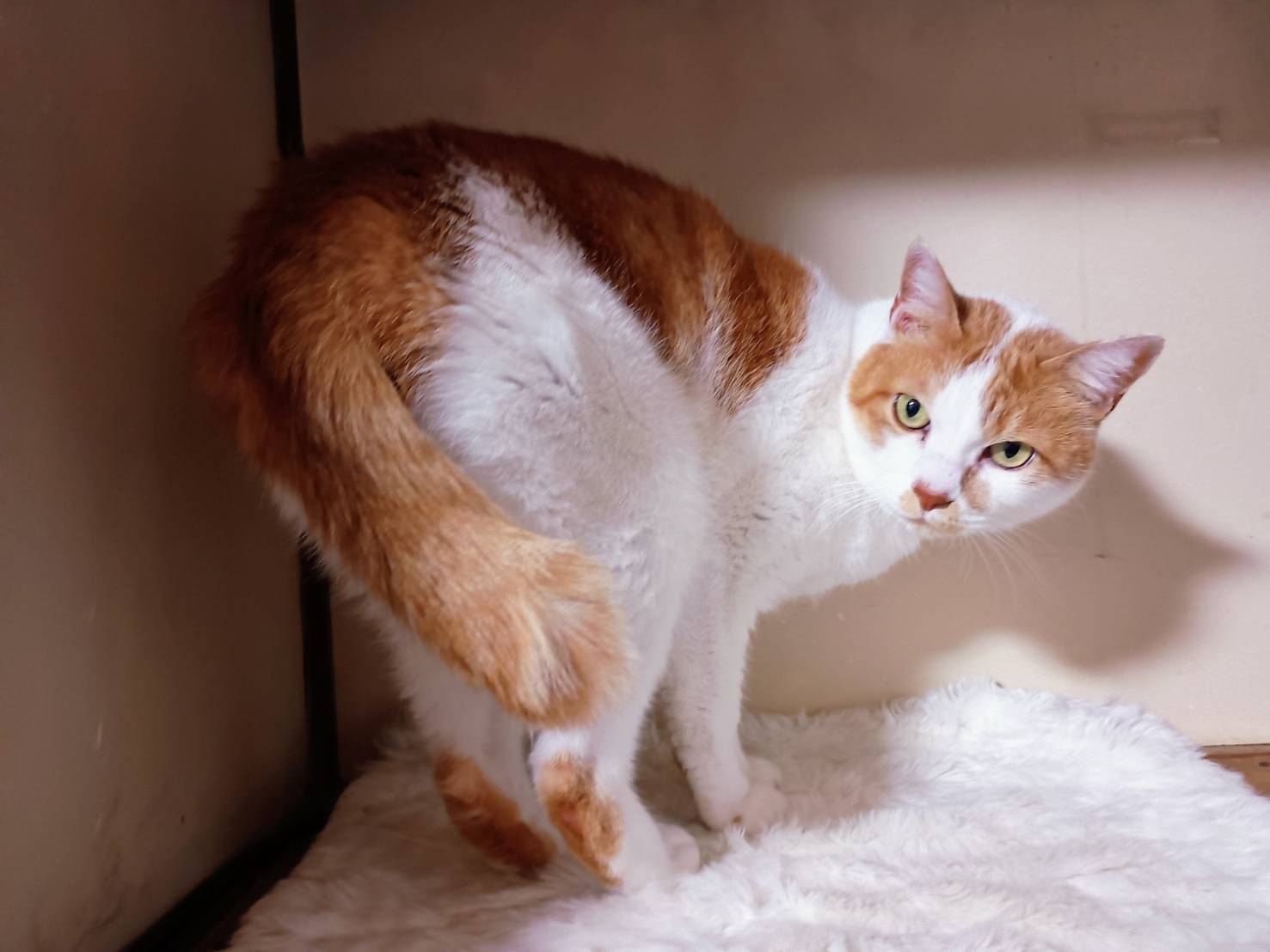 とても怖がりで人や他のネコちゃんからは距離を取ると思います。