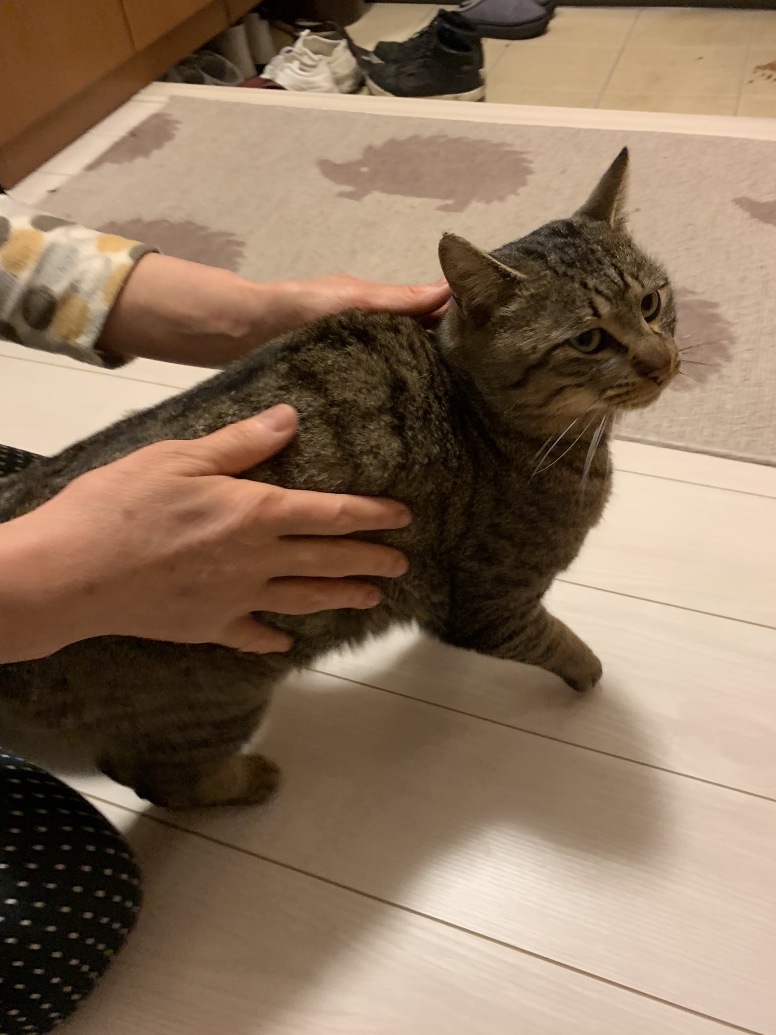 首輪もなし、去勢もされていたか微妙なところなのですが、呼ぶと近寄ってくる、撫でるとすり寄ってゴロゴロ喉を鳴らす、抱っこができる、出されたカリカリを躊躇なく食べる…といったところから十中八九迷い猫と思われます。