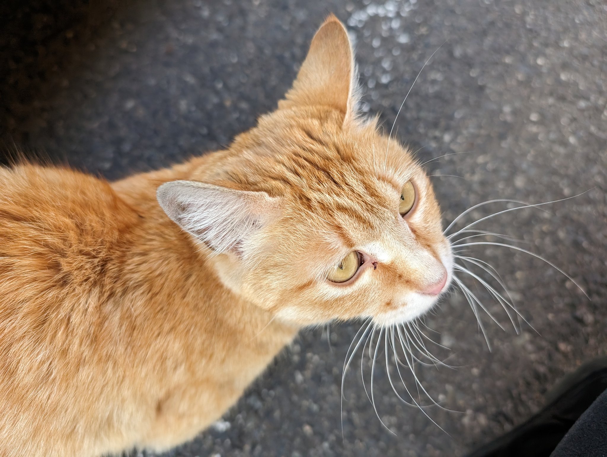 とても人懐こく警戒なく人の膝の上で寝たりしています。