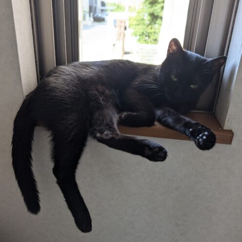 2025年5月12日 兵庫県姫路市網干区で「黒猫」の「くぅちゃん」が迷子になりました。色は黒、年齢は8才、性別は女の子です。